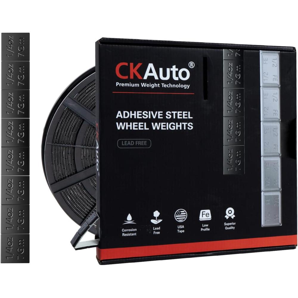imageCKAuto 12oz Trapezium Adhesive Stick on Wheel WeightsEasyPeel Tape 72ozBox US Quality144pcs Blackgray