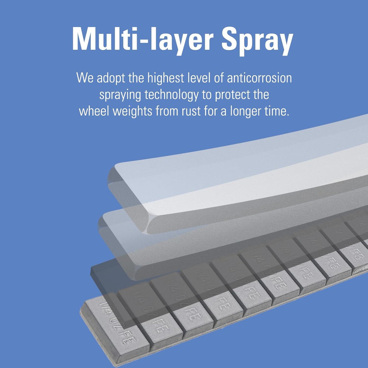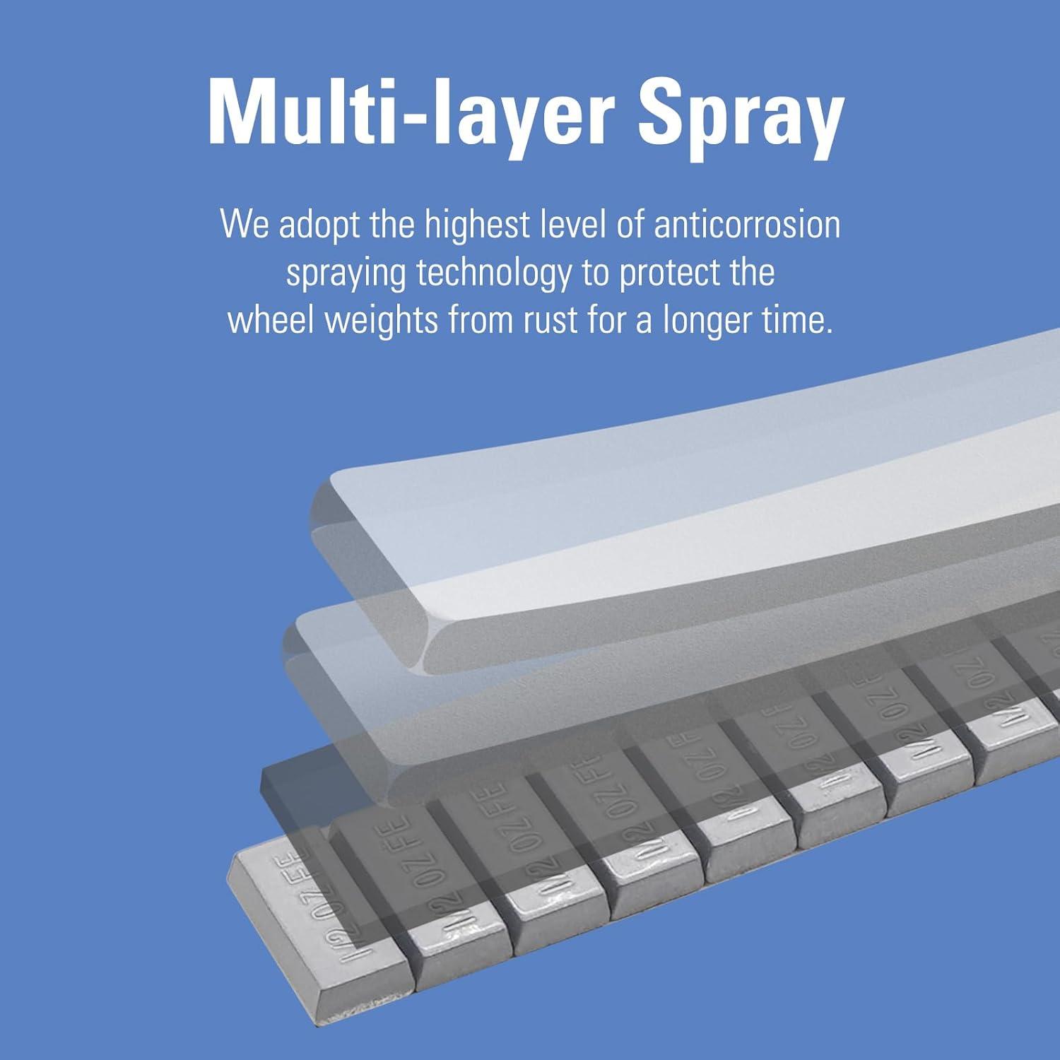 Anti-Corrosion – The surface layer of the wheel weights is first electrogalvanized, then apply multilayer and omni-dimension plastic spraying process.