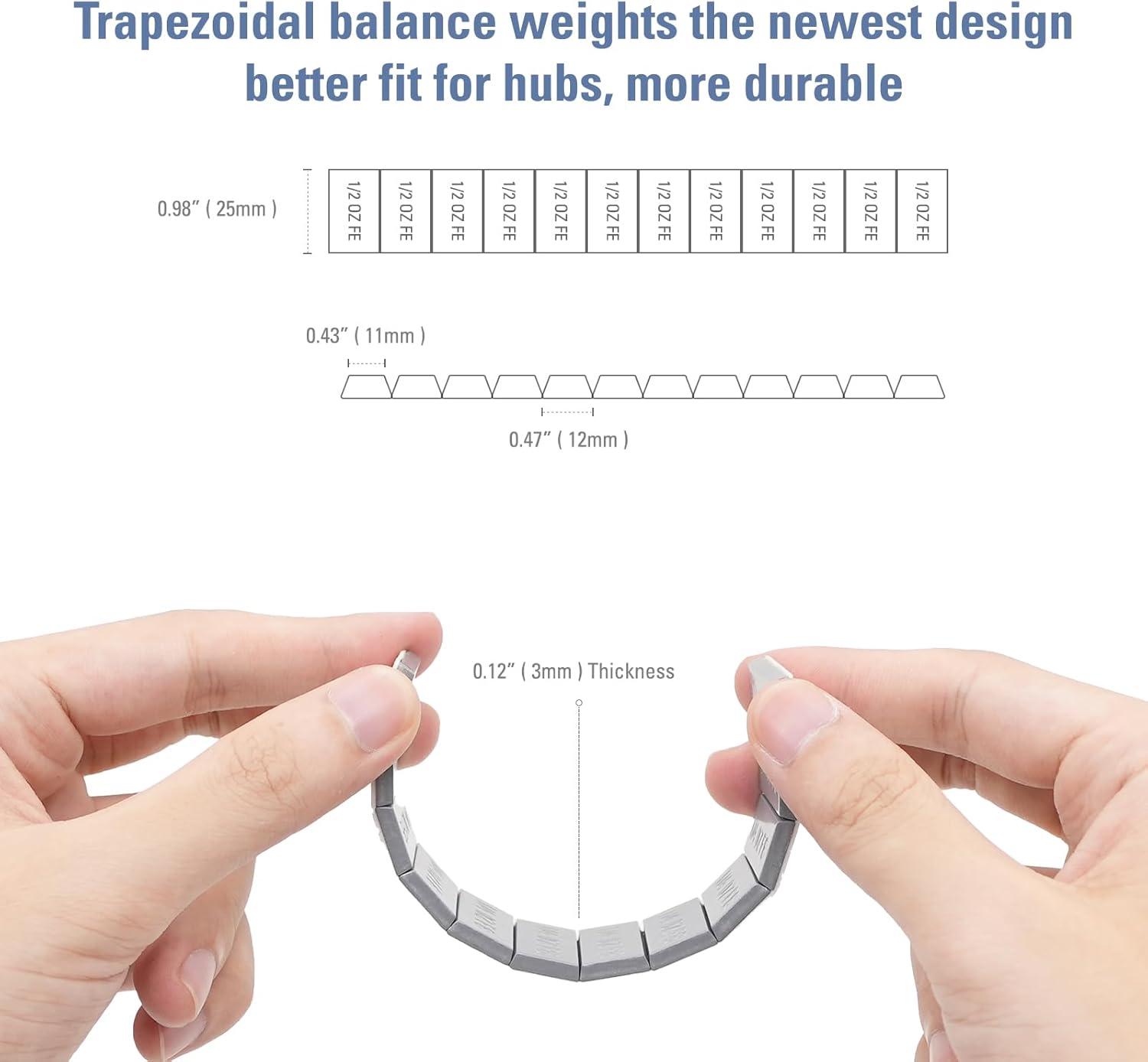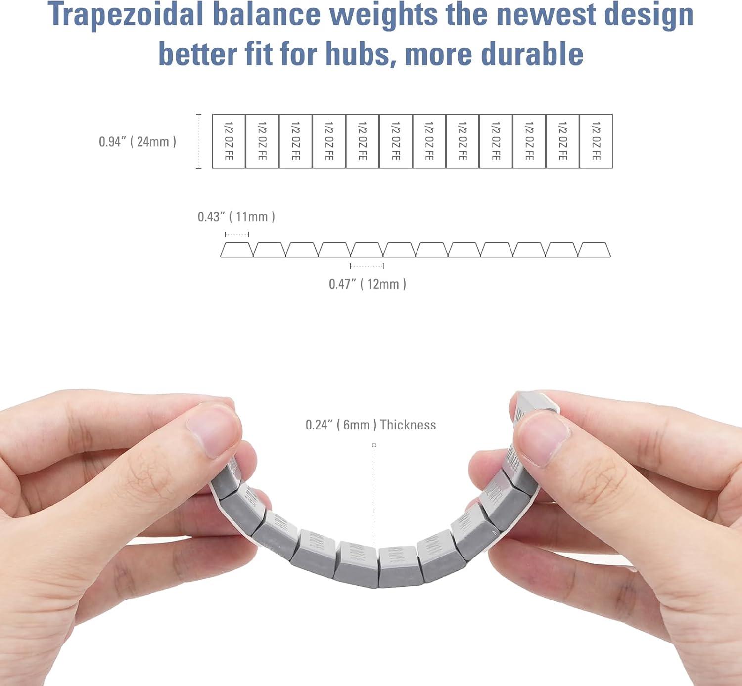 CKAuto 1/2oz Trapezium Adhesive Stick on Wheel Weights,EasyPeel Tape, 72oz/Box, US Quality(144pcs) Black(black)