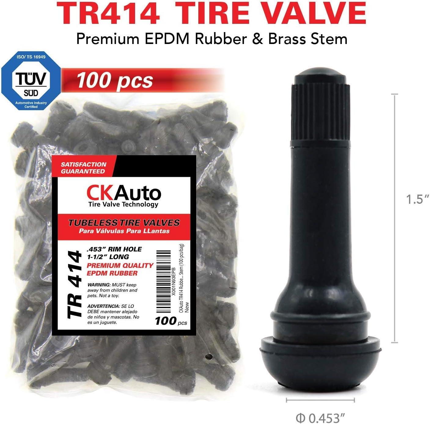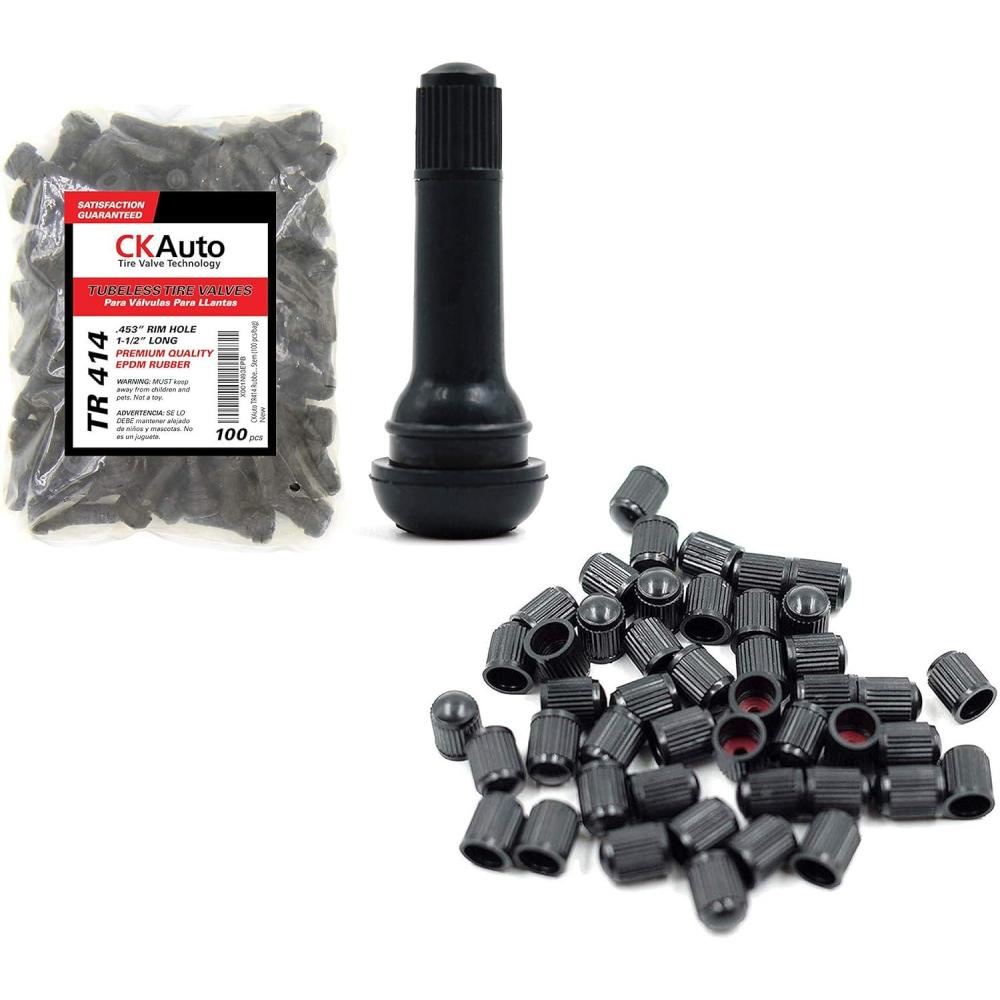 imageCKAuto 100pcs TR414 Rubber Tire Valve Stems with 50 Pcs Black Plastic Valve Stem Caps