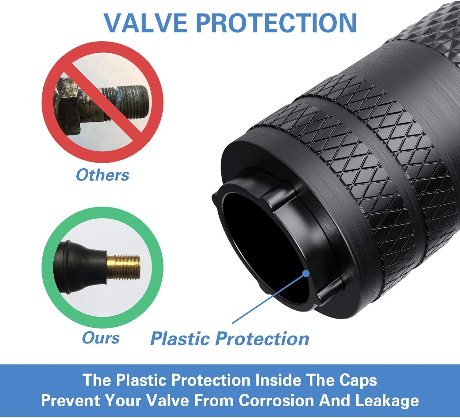 Special Design – Metal materials are prone to rust in the presence of water and oxygen, which may lead to corrosion on valve body. The plastic inner valve caps design combines the attribution of corrosion resistance of plastic and the stylish look of metal.