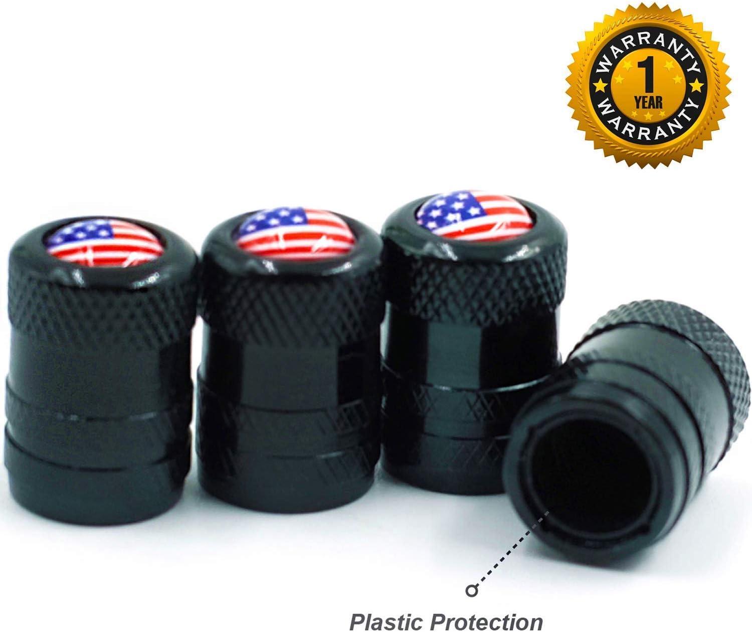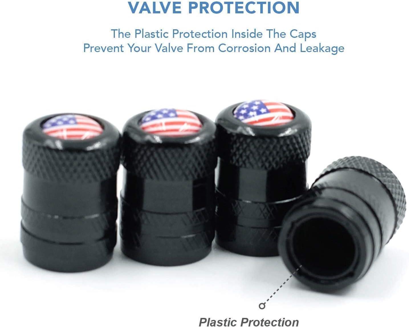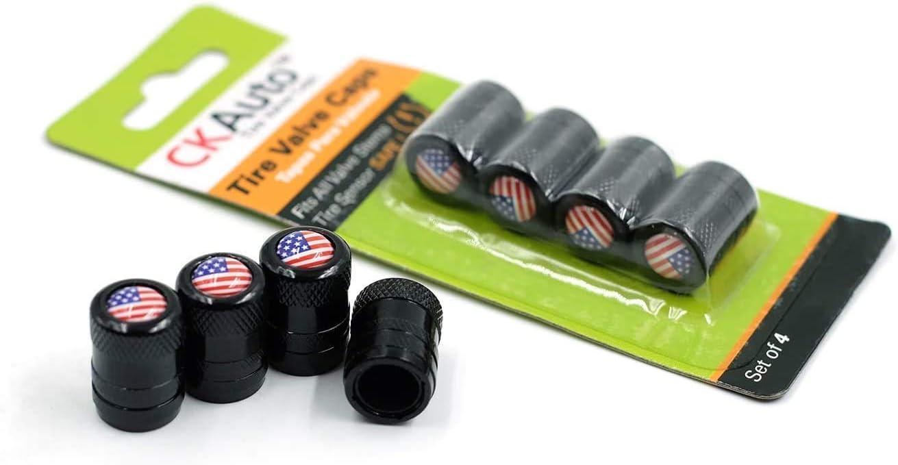 CKAuto American Flag Tire Valve Stem Caps, USA with Plastic Protection Inside, Universal Stem Covers for Cars, SUVs, Bike, Bicycle, Trucks, Motorcycles, Airtight Heavy Duty.