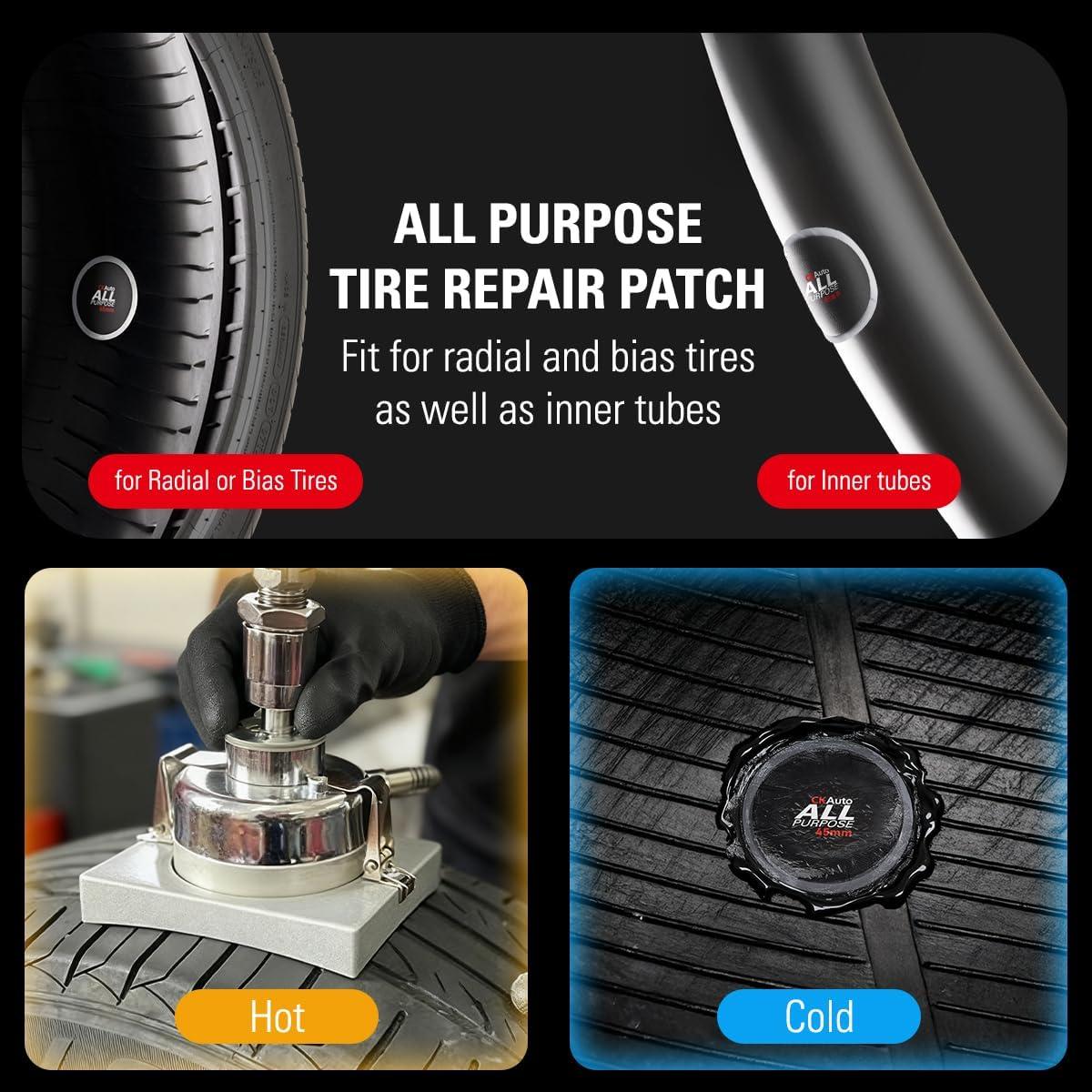 UNIVERSAL FIT: Heavy-duty tire patches are expertly designed for radial and bias-ply tires, suitable for car truck motorcycle and inner tire. Ideal for everyday light-duty repairs, they simplify your inventory and are perfect for repair shops, fleet maintenance, and DIYers.