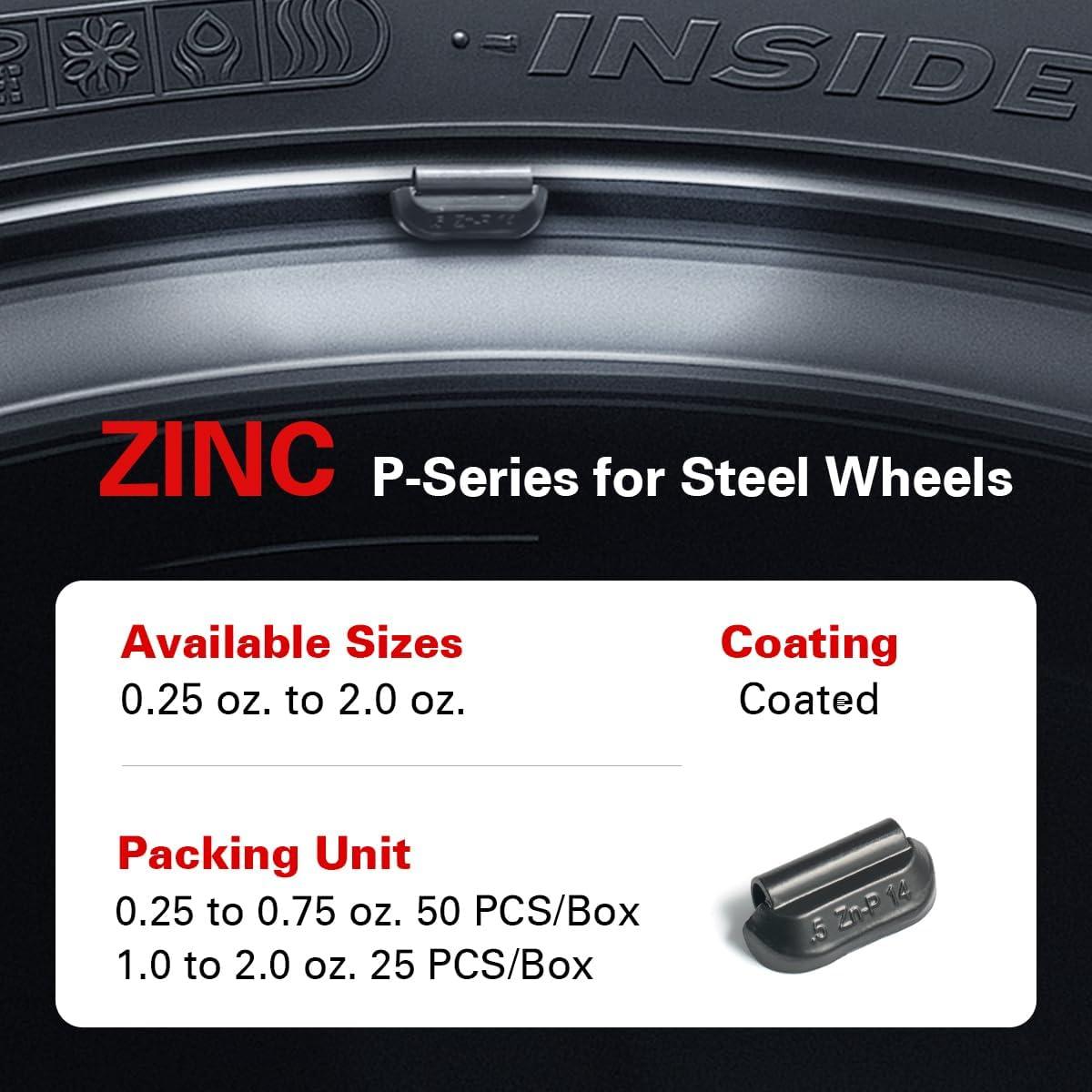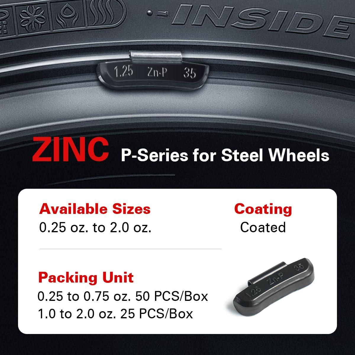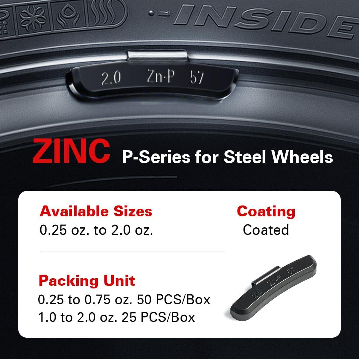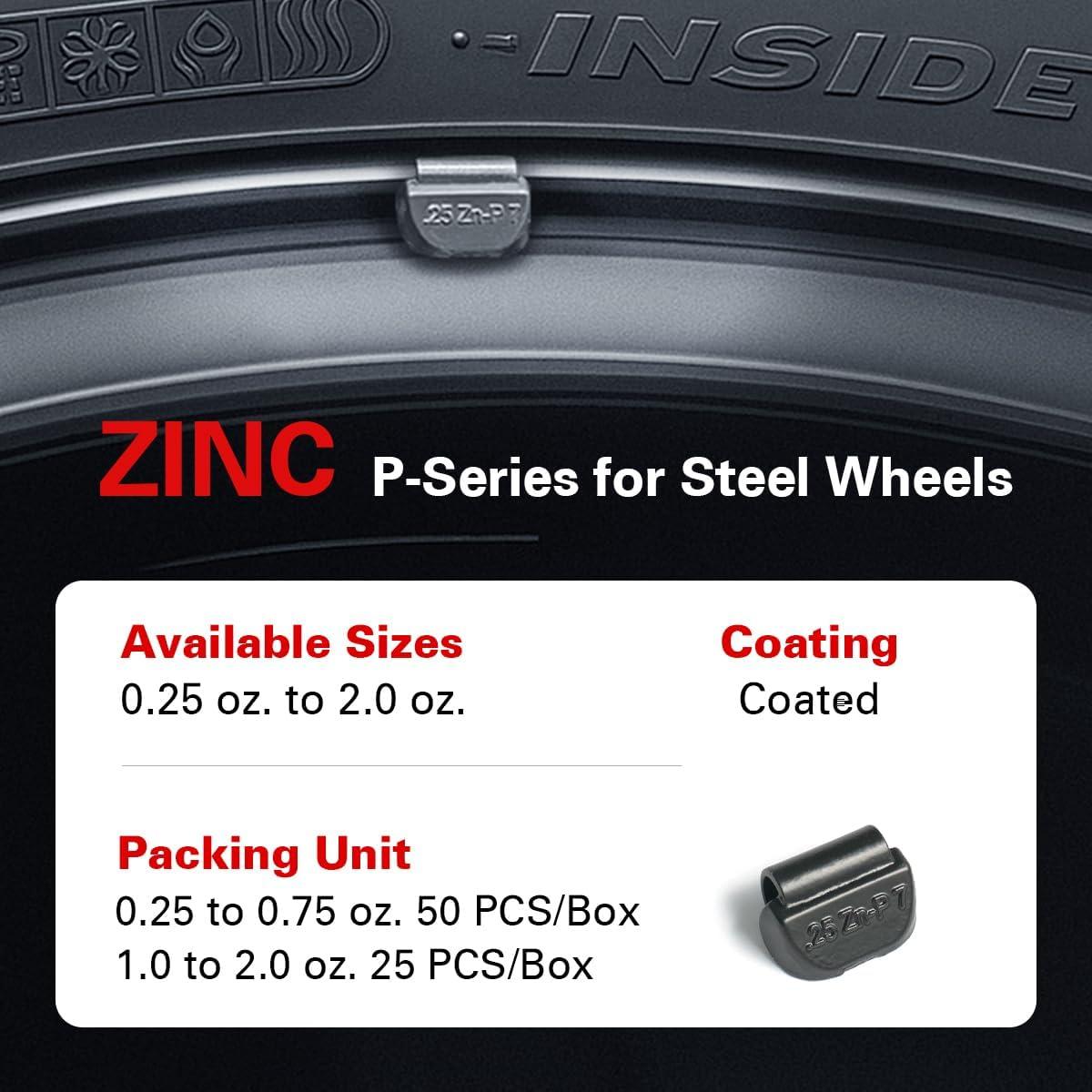 CKAuto P Series Zinc Clip on Wheel Weights 1oz, Coated, 25Pcs/Box Fit for Steel Wheel(black)