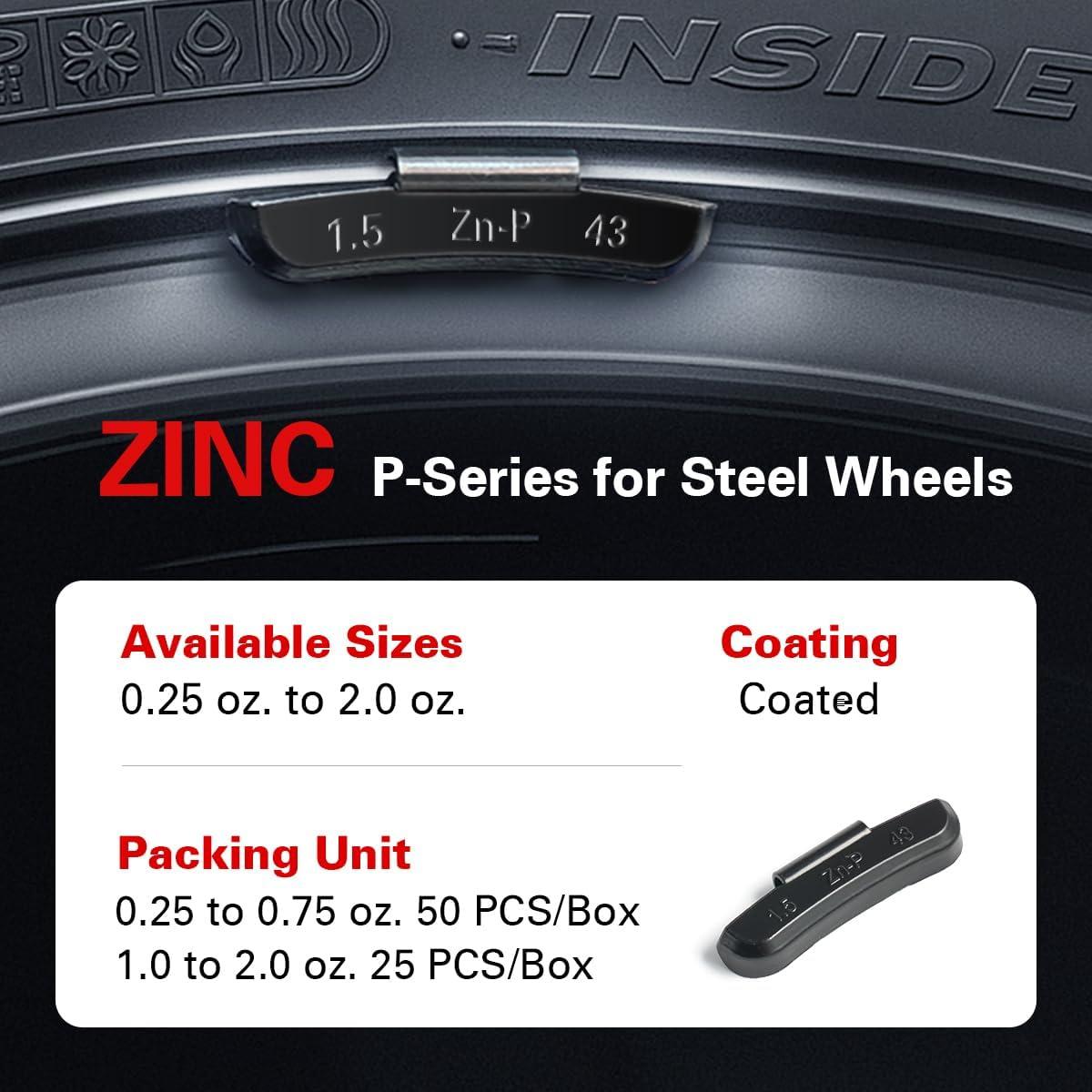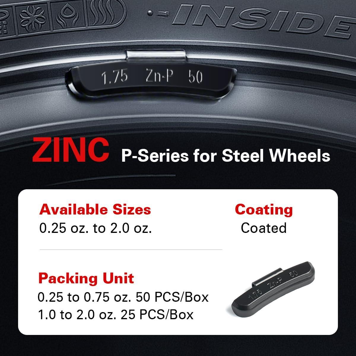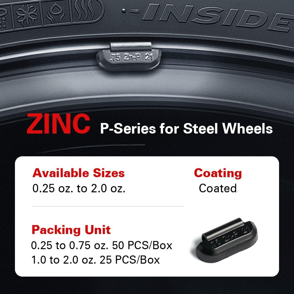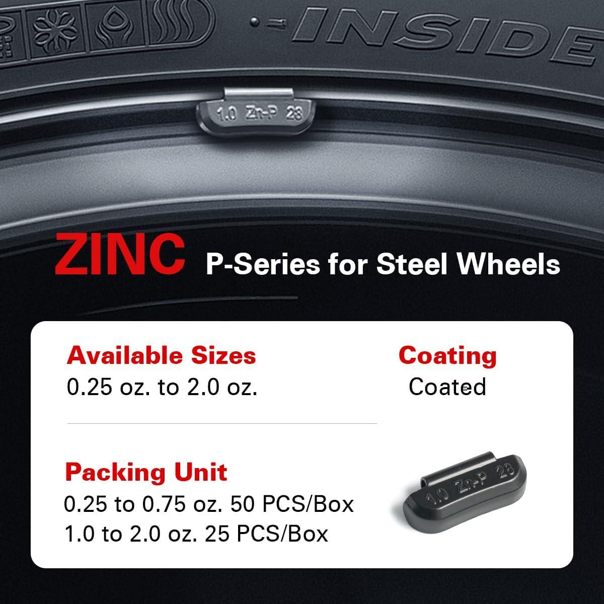 CKAuto P Series Zinc Clip on Wheel Weights 1oz, Coated, 25Pcs/Box Fit for Steel Wheel(black)