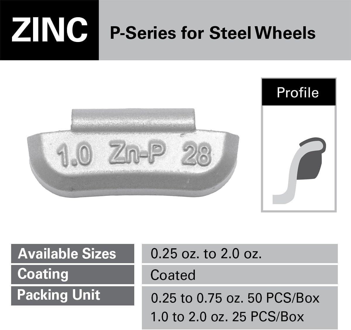 Specification: P type, Zinc clip on wheel weights, 1.0oz, total 25pcs per box, Coated