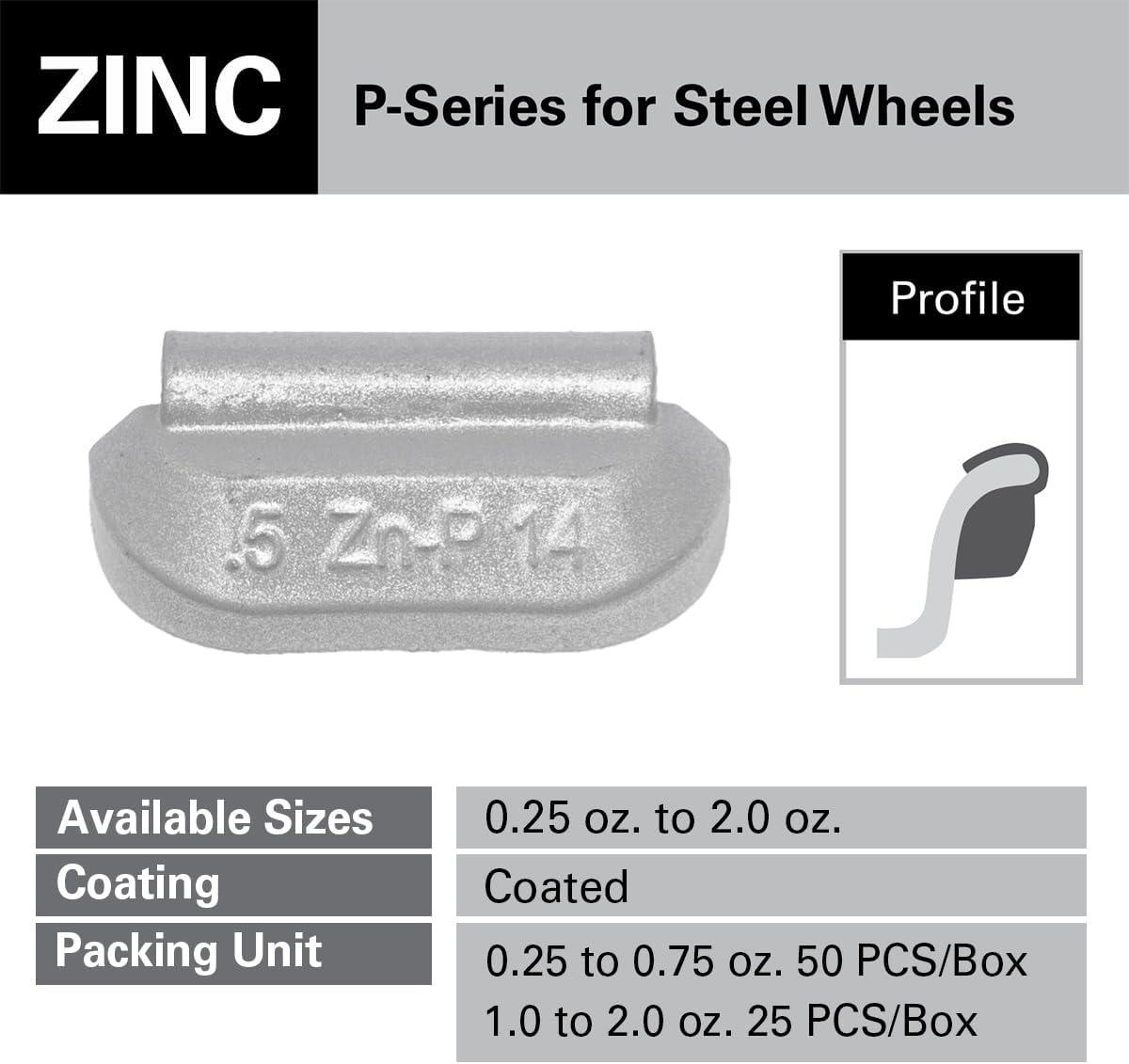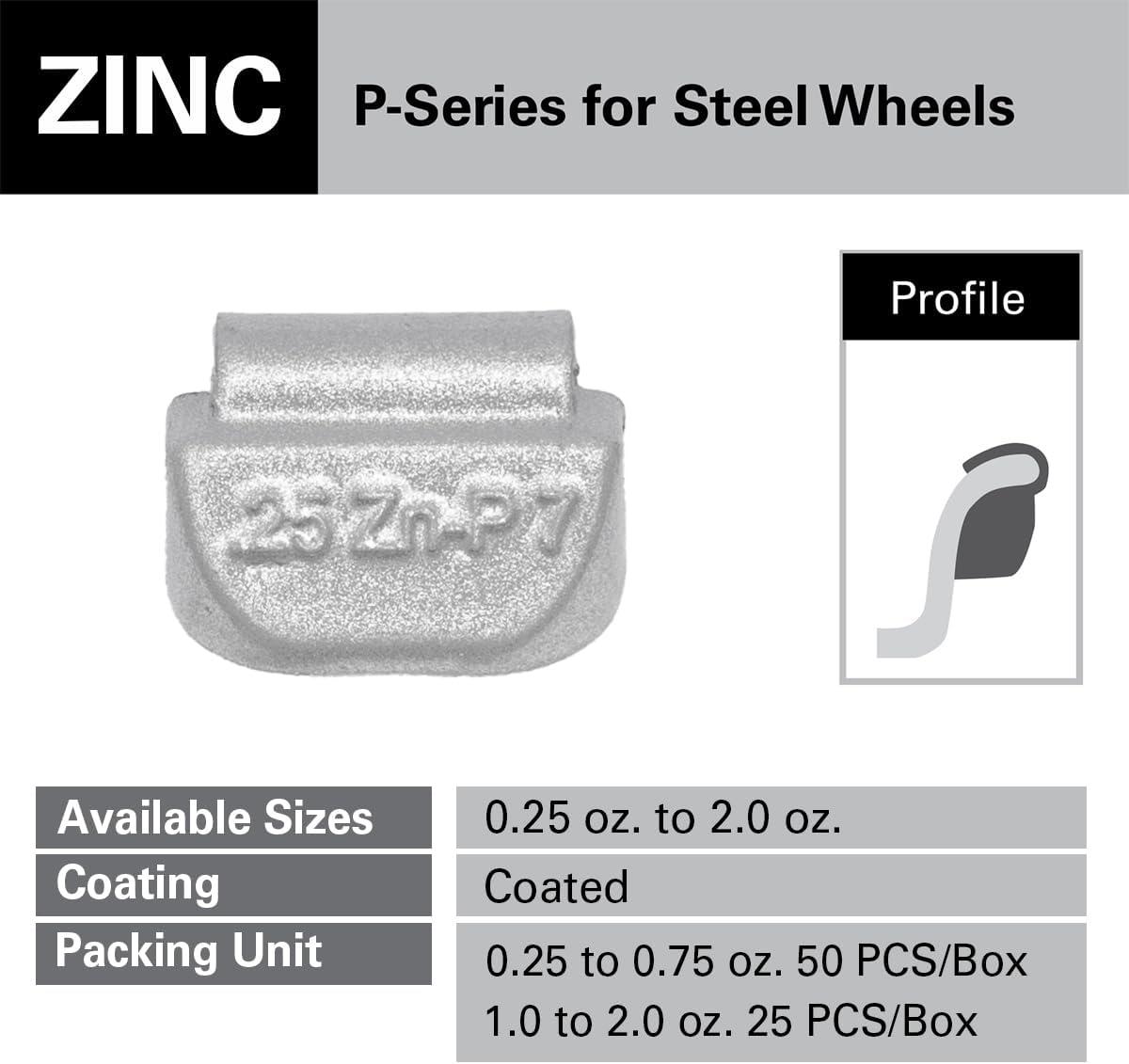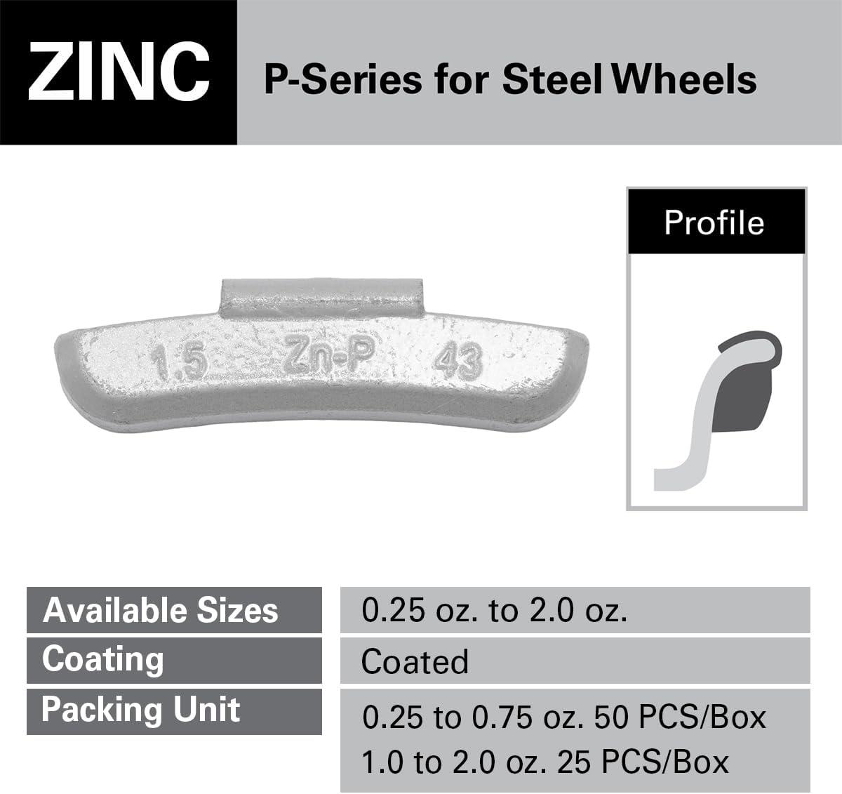 imageCKAuto P Series Zinc Clip on Wheel Weights 1oz Coated 25PcsBox Fit for Steel Wheelupgraded gray