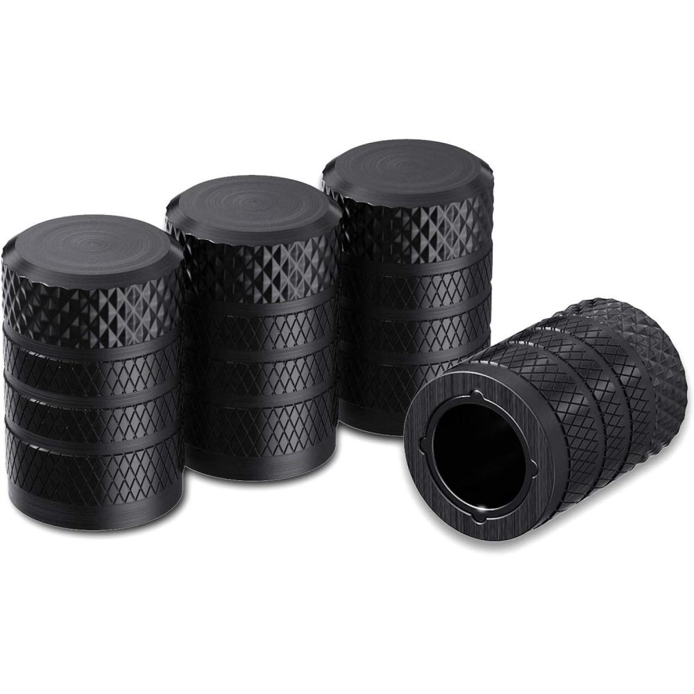 imageCKAuto Tire Valve Stem Caps Pink 4 pcsPack Anodized Aluminum Tire Valve Cap Set Corrosion Resistant Universal Stem Covers for Cars Trucks Motorcycles SUVs and BikesBlack