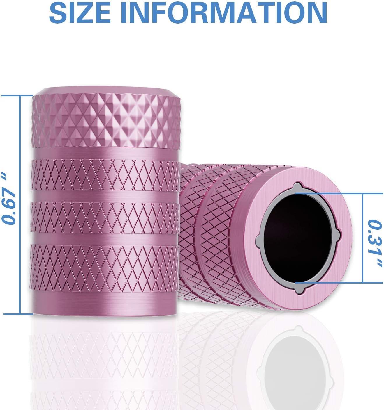 CKAuto Tire Valve Stem Caps, Silver, 10 pcs/Pack, Anodized Aluminum Tire Cap Set, Corrosion Resistant, Universal Stem Covers for Cars Trucks Motorcycles SUVs and Bikes(Pink)