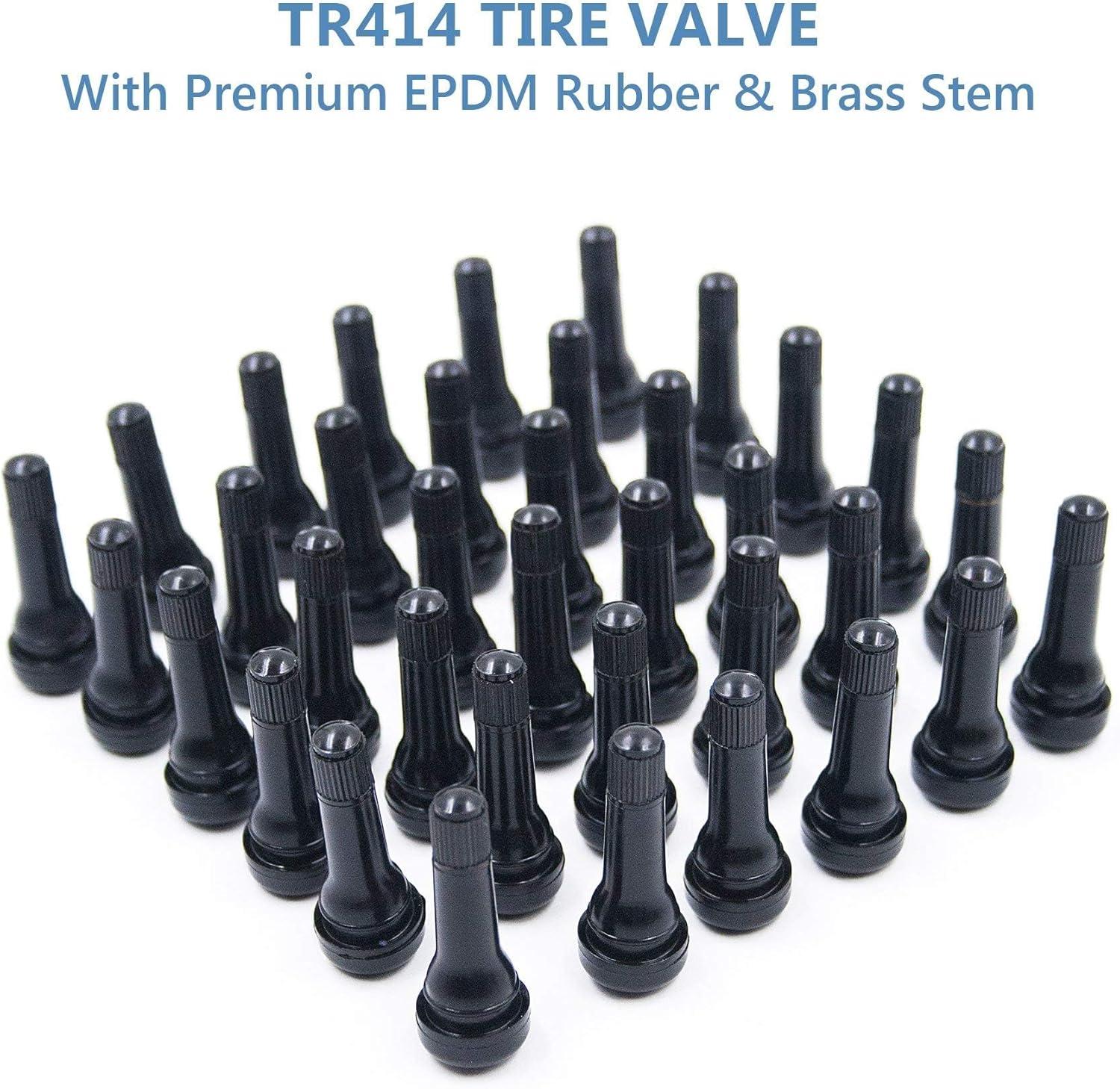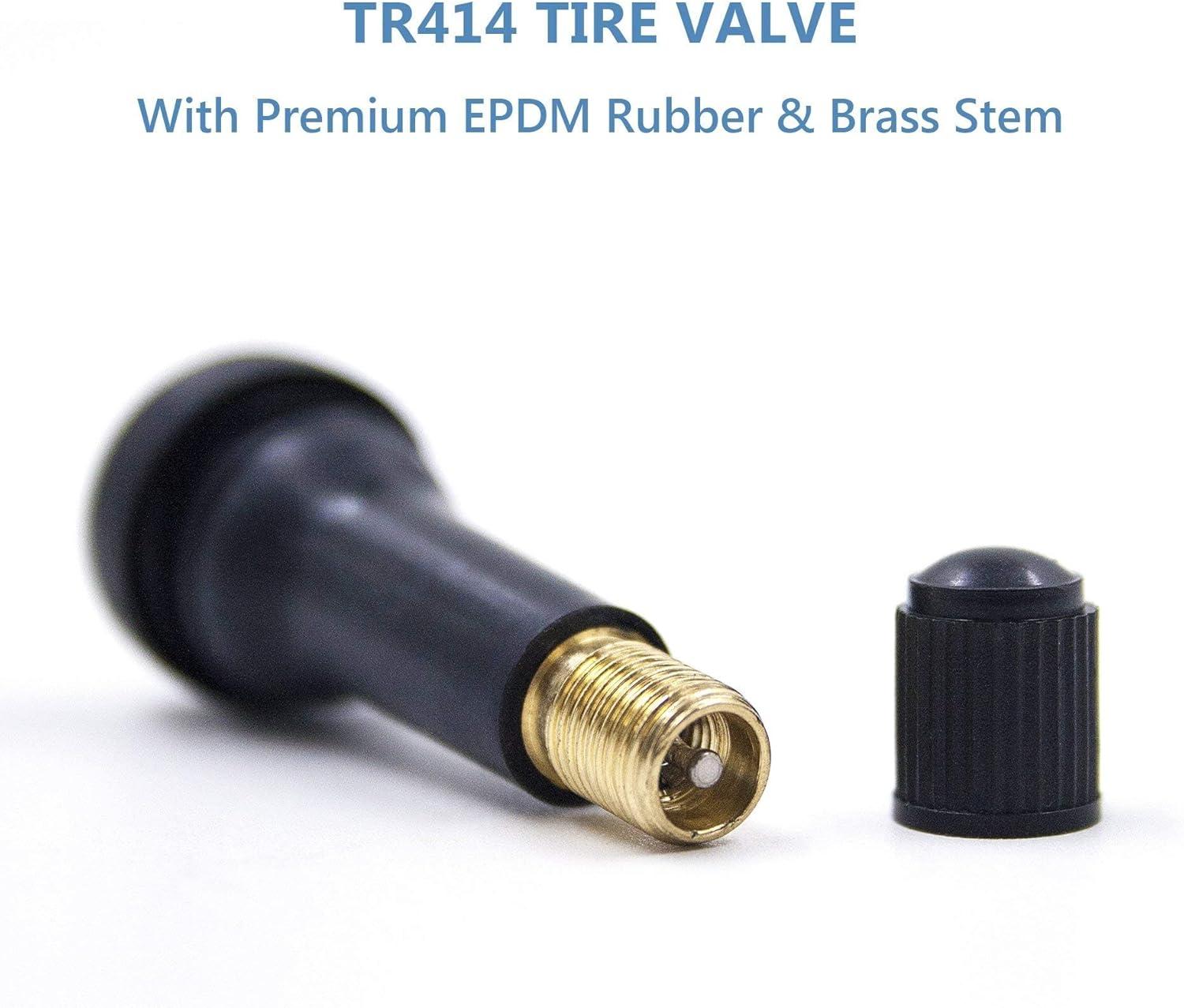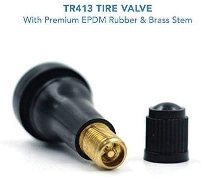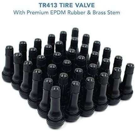 CKAuto brand Premium TR413 & TR414 Rubber Snap-in Valve Stem (100 pcs/ bag/style) U.S.standard and high quality is guaranteed; Providing safe tire system and safe driving Constructed of brass and ozone resistant EPDM rubber 100 percent leakage tested Designed for rim holes 11.5 (.453 dia), 100 pcs/bag /style