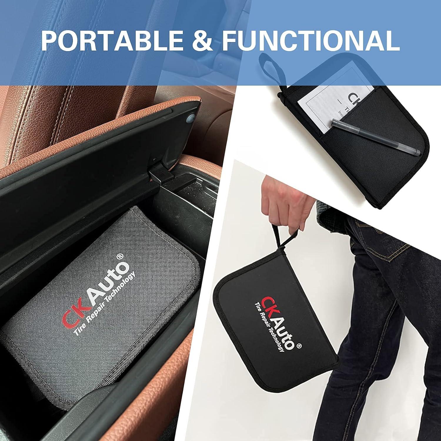 【Portable Bag】– CKAuto Universal Tire Repair Tools can be conveniently organized in a compact carry bag, airtight plastic bag design for tire plugs can maximize the service life of the strips, which is perfect car emergency accessories.